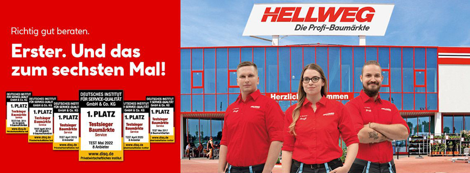 HELLWEG Die Profi-Bau- und Gartenmärkte ist ein großes, mittelständisches Handelsunternehmen im Familienbesitz und wurde mehrfach als "bester Baumarkt für exzellenten Kundenservice" ausgezeichnet.